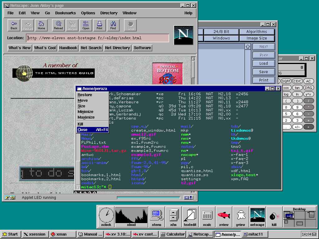 FVWM95: falando neste… segue o link da versão dele modificada para imitar o Windows 9x. Se não me engano, este era o desktop padrão que vinha no “Conectiva Linux Marumbi 5.0”, ou algo assim. Aliás, a primeira vez que ouvi falar do GNU/Linux foi nessa versão, que ainda era derivativa da RedHat, e foi distribuída na Revista Geek em 1998.